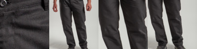 65% polyester/35% cotton. Traditional waistband with belt loops. Concealed zip fly with button over. Two side swing pockets. Rear open pocket.