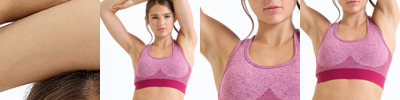 Seamless sports bra. Contrast grown on waistband. Wicking fabric. Body sculpting design detailing. Medium impact. We recommend using block out vinyl and inks.Product contains no branded neck or waist label. Removable Kimble or looped garment tags. Inner seam label holds important product information on one label with a second label containing brand information which can be cut-away.