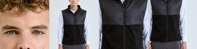 Hybrid gilet with padded panel upper chest and side seams. Lower jacket is shell fabric. Full zip-through style with collar. Drawcord inner hem. Zip side pockets. Concealed packable hood with adjustable cord and toggle to the back for to create a snug fit. Zip embroidery access to back panel and left chest. Inner pocket to left chest. Internal storm flap with zip guard. Packable bag included for handy storage of gilet when not in use. We recommend using block out vinyl and inks.Product contains no branded neck or waist label. Removable Kimble or looped garment tags. Inner seam label holds important product information on one label with a second label containing brand information which can be cut-away.