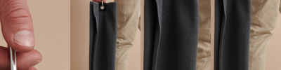 63% polyester/35% cotton/2% elastane. Easy care fabric. Stretch fabric for ease of movement. Belt loops. YKK zip fly with button over. Two side pockets with rivet detail. Rear patch pockets. Domestic wash 60°C.