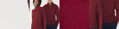 Contrast upper chest and underarm panels. Quarter zip. Side panels. Reverse nylon zips centre front and side pockets. 1x1 ribbed cuff sleeve. Semi-automatic zip pull and slider.
