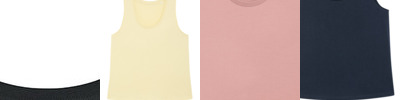 Sleeveless. 1x1 rib at neck collar and armhole. Inside back neck tape in self-fabric. Bottom hem with narrow double topstitch.