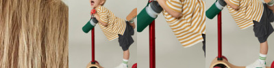 - Tricot lined hood in collar with tear release fastening