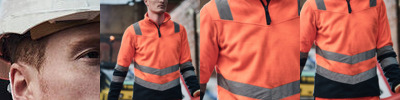 Anti-pill Symmetry fleece. Conforms to EN ISO 20471:2013 +A1:2016 Class 2 (orange also RIS-3279/TOM). Half-zip.