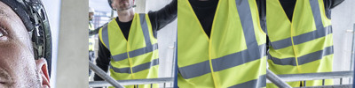 100% polyester tricot mesh fabric. Conforms to EN ISO 20471:2013 +A1:2016 Class 2 (orange also RIS-3279/TOM). Hook and loop fastening.