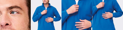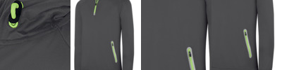 90% polyester/10% elastane. Ultra soft brushed jersey fabric. Raglan sleeves. Grown on adjustable hood. Contrast zip neck with chin guard and inner zip guard. Two front contrast reflective zip pockets. Thumbholes on cuffs.
