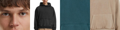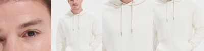 80% organic cotton/20% recycled polyester.* Cotton faced fabric. Brushed back fleece. Raglan sleeves. Lined hood with self colour round drawcord. Metal eyelets and drawcord tips. Taped neck. Half moon back yoke. Front pouch pocket. 2x2 cotton/elastane ribbed cuffs and hem. Unbranded size label at neckline.
