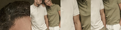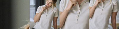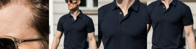 95% organic ringspun combed cotton/5% elastane. Mini piqué. Fitted style. Flat knit collar with elastane. Taped neck. Narrow five button placket with self colour branded buttons. Twin needle cuffs and hem.