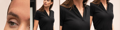 95% organic ringspun combed cotton/5% elastane mini piqué. Double pre-shrunk.Tailored fit.Flat knit collar with elastane.Taped neck.Five button placket with self colour buttons.Side vents.Self fabric cuffs with elastane.Twin needle hem.