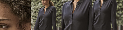 Stretch deluxe fitting. Tone-in-tone buttons. Three-button placket. Shirt collar stand. Combed organic cotton. Organic Content Standard 100 (OCS Certified, CU1038206).
