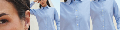 Oxford cotton with wrinkle resistant finish. Pearlised buttons on Blue options, DTM on all others. Ladies fit with shaped side seams and scooped hem. Perfectly complements men’s HB510. Size XS - 8 , S - 10 , M - 12 , L[/b/ - 14 , XL - 16 , XXL - 18 , 3XL - 20 , 4XL - 22 Icons: Wrinkle Resistant