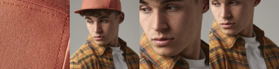 Classic shape with 2-tone treatments. Premium wood blend. Contrast plastic snap. Contrast eyelets and button. Hard buckram. Green under visor