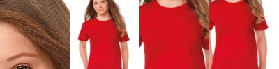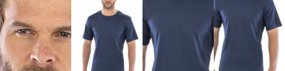 Short-sleeved T-shirt. Generous cut with tubular construction. Exact 2-ply crew neck, 1x1 ribbed collar with Elastane.