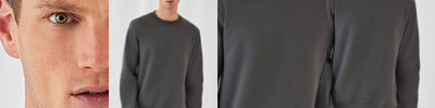Crewneck sweatshirt. Collar, cuffs and bottom hem in 1x1 rib with Elastane. Topstitching flatlock on shoulders, armholes and bottom hemline. Modern cut. Tubular construction.