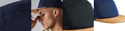 Tear away label for ease of rebranding. Flat peak. Faux suede peak. Leather strap adjuster with brass effect buckle. Authentic metal ventilation eyelet.