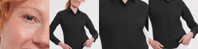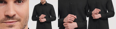 Smart and stylish shirt design in a fine poplin fabric with two fits available for male (tailored and classic) and female (fitted and classic) styles. Concealed placket. Stylish yoke design. Darts on bust front hem and back pane for fitted shape. Decorative top stitch on darts. Modern rounded 2 button cuffs. Rounded hem.