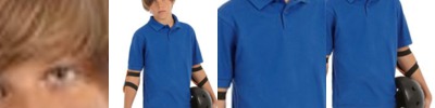 Short-sleeved Polo Shirt. Flat knitted rib collar and cuffs. Reinforced placket with 2 matching colour buttons.