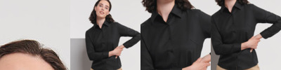True easy care fabric requires minimal ironing. Darts at bustline and back panel for tailored fit. 2 button collar stand with classic shaped collar. Rounded 2 button adjustable cuffs.