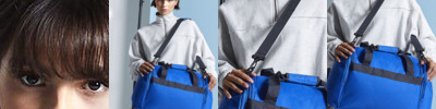 Hi-viz reflective strips, concealed name card holder on the back. Webbing handle.