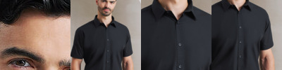 Smart corporate short sleeved shirt in classic poplin fabric. True easy care fabric requires minimal ironing. Classic single-button collar. 7 button placket with matching colour buttons. Single pocket over left chest.