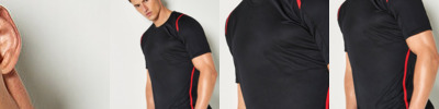 100% polyester with moisture management finish. Self fabric round neck. Contrast binding running over the shoulder, down the back and round to the front finishing at lower hem. Self coloured flatlock stitching down centre sleeves back and front. Twin needle cuffs. Straight front hem, curved back hem. Gamegear® woven label.
