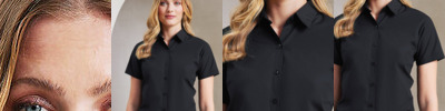 Ladies Easycare short sleeve blouse with improved wear and appearance. Supreme poplin. Soft collar styling. Rounded bottom hem. Fitted styling with bust and back darts. Easy cut-out label for rebranding. Made from OEKO-TEX® Standard 100 fabric.