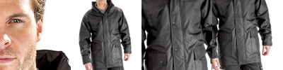 Front 2-way zip fastening. Stud closing stormflap. Concealed fold-away zip-off adjustable hood. Adjustable shockcord hem. Deep front flat stitch pockets with stud closers, inside chest pocket with internal cable access, external chest pocket. Underarm mesh eyelets. Fully taped seams. Inner ribbed cuff. Unique foil based insulation increases warmth without bulk and reduces body heat loss. Classic styling. Generous fit for over suit wear. Extra venting from underarm mesh eyelets. Breathable 2000g, waterproof 2000mm, windproof.