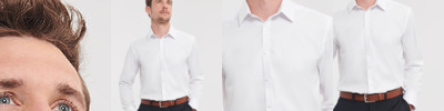 Stretch fabric for added comfort and fit; requires minimal care, 7 button placket with matching colour buttons. Smart, semi cut-away collar with single pearlised button.