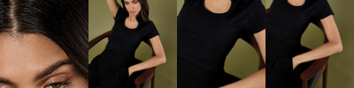 Double stitched sleeve and waist rib. Set in sleeves. 1x1 athletic rib knit with Lycra®. Quarter-turned body to eliminate centre crease.