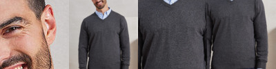 Men's long sleeve V neck sweater. Soft feel/Cotton rich yarn. Ideal for wearing with or without a tie. Fine gauge knit. Contemporary styling. Set in sleeves. 40°C Domestic wash. Size XXS, XS, S, M, L, XL, 2XL, 3XL, 4XL
