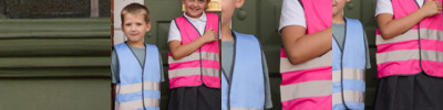 Generous in size allowing to be worn as an over garment. Black Polyester bound edges. 50mm sewn on safety tapes. Note: these garments should be worn fastened and kept clean to maintain effectiveness. Conforms to EN1150 – 89/686/EEC directive Size - Age S - 4/6 , M - 7/9 , L - 10/12 Chest to fit 22.5/24”, 25/27.5”, 29/31”