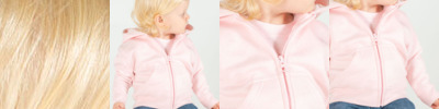 Hooded sweatshirt with plastic dyed to match zipper. Single jersey in hood. Kangaroo pocket. Knitted rib at cuff and hem. Twin needle stitching. Size - Age (months) 6/12, 12/18, 18/24, 24/36 Years 3/4 years