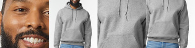 Double lined hood. Drawstring at neckline. Double stitched pouched pocket, neck and armhole. Double stitched sleeve and waist rib. 1x1 athletic rib knit with Lycra®. Quarter-turned body to eliminate centre crease