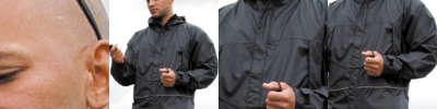 Ripstop waterproof (2,000mm). Windproof. Foldaway shadow printed lined hood with shockcord adjusters. Stud closing stormflap. Full front zip fastening. 2 mesh lined zip closing side pockets. Tear release adjustable cuffs. Adjustable shockcord hem. Decorative reflecting piping around lower body. Fully Taped waterproof Seams. Concealed access for print and embroidery. Also available in kids'