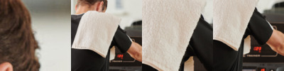 2.3cm knit collar. Shoulder to shoulder taping. Fine gauge knit. Front coverseaming on collar. Tubular construction for shape retention.