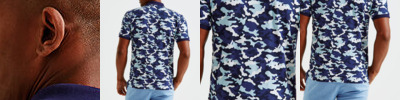 Classic fit polo with Camo print design. Ribbed knit collar and sleeve cuffs. Twin needle stitching on hem. Two self coloured buttons on placket. Product contains no branded neck label. Removable Kimble or looped garment tags. Inner seam label holds important product information on one label with a second label containing brand information which can be cut-away. Please note old stock may contain a fixed branded label