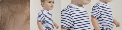 Short sleeved striped t-shirt with plain rib detail at neck. Set-in sleeves and twin needle stitching. Size tab only.
