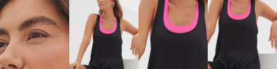 Tear-out label. Strappy back, drop armhole and hem. Flatlock stitching. Scoop neckline.