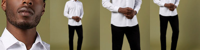 Fused semi cutaway collar. 7-button placket with self-coloured buttons. Rounded hem. back yoke. Single stitching around armholes. Double-stitched sleeves and side seams. Adjustable 1-button cuff with pointed no button cuff placket. Patch pocket with angled corners to left chest as worn. Spare button. Kustom Kit® woven back neck label.