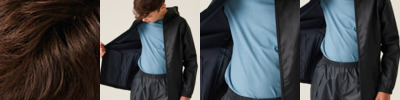 Fabric information - Waterproof Hydrafort 5000 polyester fabric. Windproof fabric. Taped seams. Special features - Jacket integral hood. Elasticated cuffs. 2 lower pockets. Reflective trim detail at back hem.