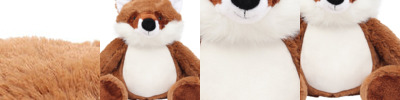 Zippie fox with brown fur on the body with contrast tummy snout, inner ear and fluffy beard, contrast nose and horns. Sewn eyes and mouth. White panel on tummy perfect for decoration. Zip access on base for direct access onto the tummy for decoration. Removable inner stuffing. Can be embroidered, vinyl and sublimation printed. Complies with EN71 European Toy Safety regulations. Remove all hang tags and their fasteners before giving these items to a child. Suitable for all ages. SEDEX certified.
