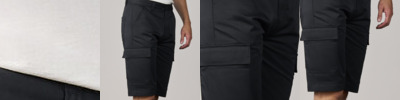 Zip fly front fastening. Part elasticated waist band with belt loops. Two side front tradesman pockets. Two upper leg utility pockets, right hand side ruler pocket, left hand side utility and phone pocket. External knee pad pockets with tear and release fastening. Two back patch pockets. Hammer loop. Twin-needle stitching on hem.