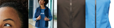 Warm-backed woven softshell with durable water-repellent finish. Fully printable fabric. Inner zip guard. 2 zipped lower pockets.