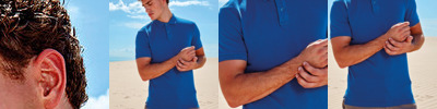Classic fit polo. 2-button placket with gathered material detailing. Short sleeves. Side vents. Knitted collar and cuffs. High stretch material. Machine washable. Product contains no branded neck label. Removable Kimble or looped garment tags. Inner seam label holds important product information on one label with a second label containing brand information which can be cut-away. Please note old stock may contain a fixed branded label.
