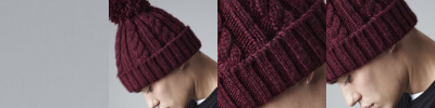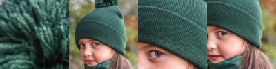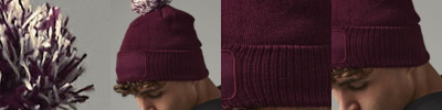 Tear-out label for ease of rebranding. Two-tone pom pom. Double-layer knit. Ribbed cuff. Cotton twill patch for printing.