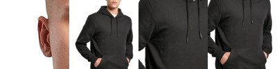Raglan sleeve. Lined hood in single Jersey. Inside herringbone back neck tape. Self-fabric half-moon at back neck. Single needle top-stitch at neckline and bottom hem. 1x1 rib at sleeve hem with twin-needle top-stitch. Round drawcords at bottom hem in matching body colour with metal tipping. Metal eyelets.