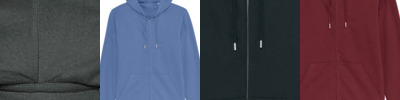 Set-in sleeve. Lined hood in single Jersey. Round drawcords in matching body colour with metal tipping. Herringbone tape at inside back neck and at inside of zipper. Metal zipper and eyelets. Covered zipper at centre front. Self-fabric half-moon at back neck. 1x1 rib at sleeve hem and bottom hem. Flatlock topstitch on all seams. Kangaroo pocket with flatlock topstitch. Unisex, medium fit, long sleeve, round-neck with hood. 85% organic ringspun combed cotton, 15% recycled polyester. Terry sweatshirt. Fabric washed, light sueded.