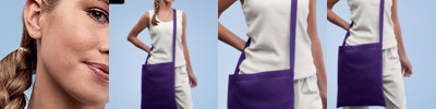 Shoulder shopper with one long handle (120 x 2.5 cm). Perfect print surface. Inside hemmed sewing.