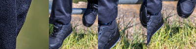 CE EN 20345:2011 SRA SB. Breathable. Durable. Lightweight. Low cut sports look. Ventilating mesh and lining wicks away moisture. Injection show moulds for this style are same for men and women; size range therefore starts with women's and runs through into men's. Padded tongue and collar. Energy absorption heel. SRA slip resistance. Spare insole set. Steel toecap. Oil resistant. Heel loop.