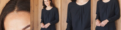 Set-in sleeves, light crewneck, twin seams cuffs at sleeved and hem.